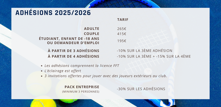 - Un badge individuel d'accès aux courts pour jouer même quand le club-house est fermé
